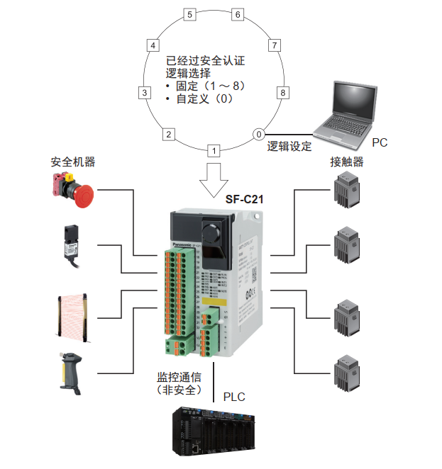 可通過選擇邏輯和連接各種安全機器,構(gòu)筑豐富多樣的安全電路。